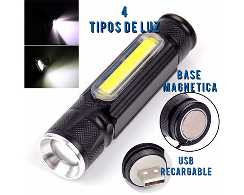 Bateria interna recargable, luz de emergencia, 2000 lumenes, base magnetica, resistente a golpes